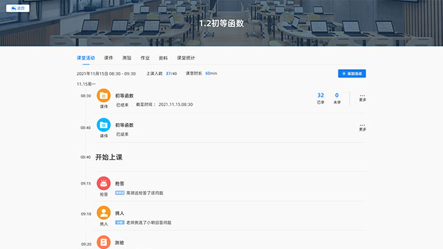 支持在线签到、挑人提问、课堂测验、互动弹幕、实时抢答等互动方式; 学生可通过电脑、平板、手机等终端参与互动。