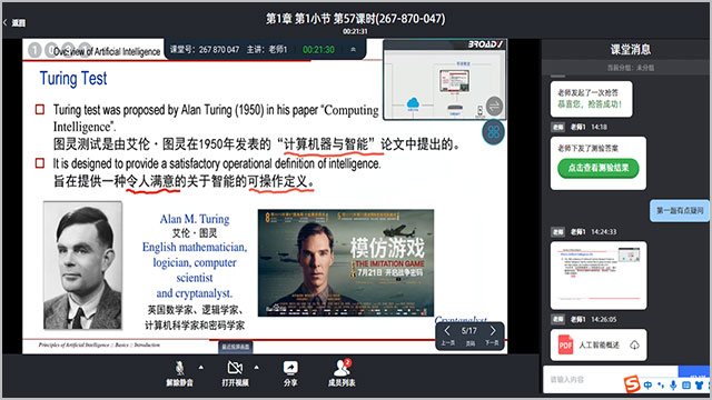 支持多个教室同上一堂课; 远端教室可以同时观看教学课件与老师画面;远端教室可以与本地教室共同参与互动。